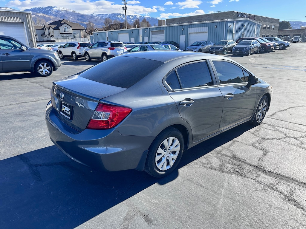 2012 Honda Civic LX Sedan, Clean Title. Low 71k Miles. Come take a test drive in one of the most reliable vehicles on the road! It comes fully equipped with Automatic Transmission, Power Windows and Locks, Cruise Control, Keyless Entry. We have a huge inventory of Japanese import cars for sale right now! See them all at york-automotive.com. We are located conveniently off I 15 at 825 South Frontage Road in Centerville, UT 84014. Take exit 319 off I 15. We are a no pressure, local family owned dealership that specializes in selling low mileage, clean title, great quality, Japanese import cars at low prices.